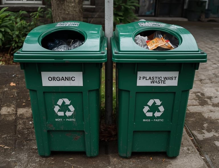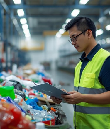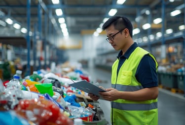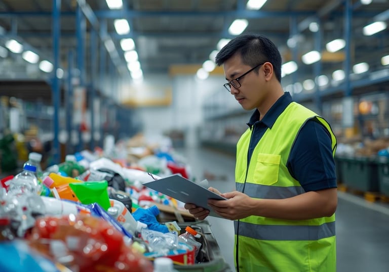 Pengelolaan material seperti PET, HDPE, PP, LDPE, pemilahan yang rapi.